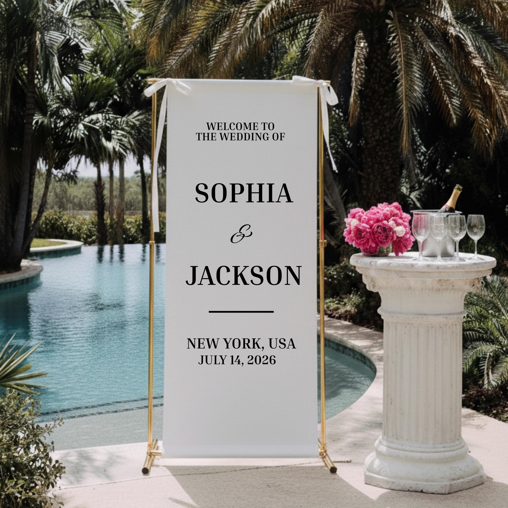 Custom Wedding Fabric Sign, Custom Welcome Banner, Modern Outdoor Wedding Decor, Personalized Ceremony Sign, Engagement Party Decoration