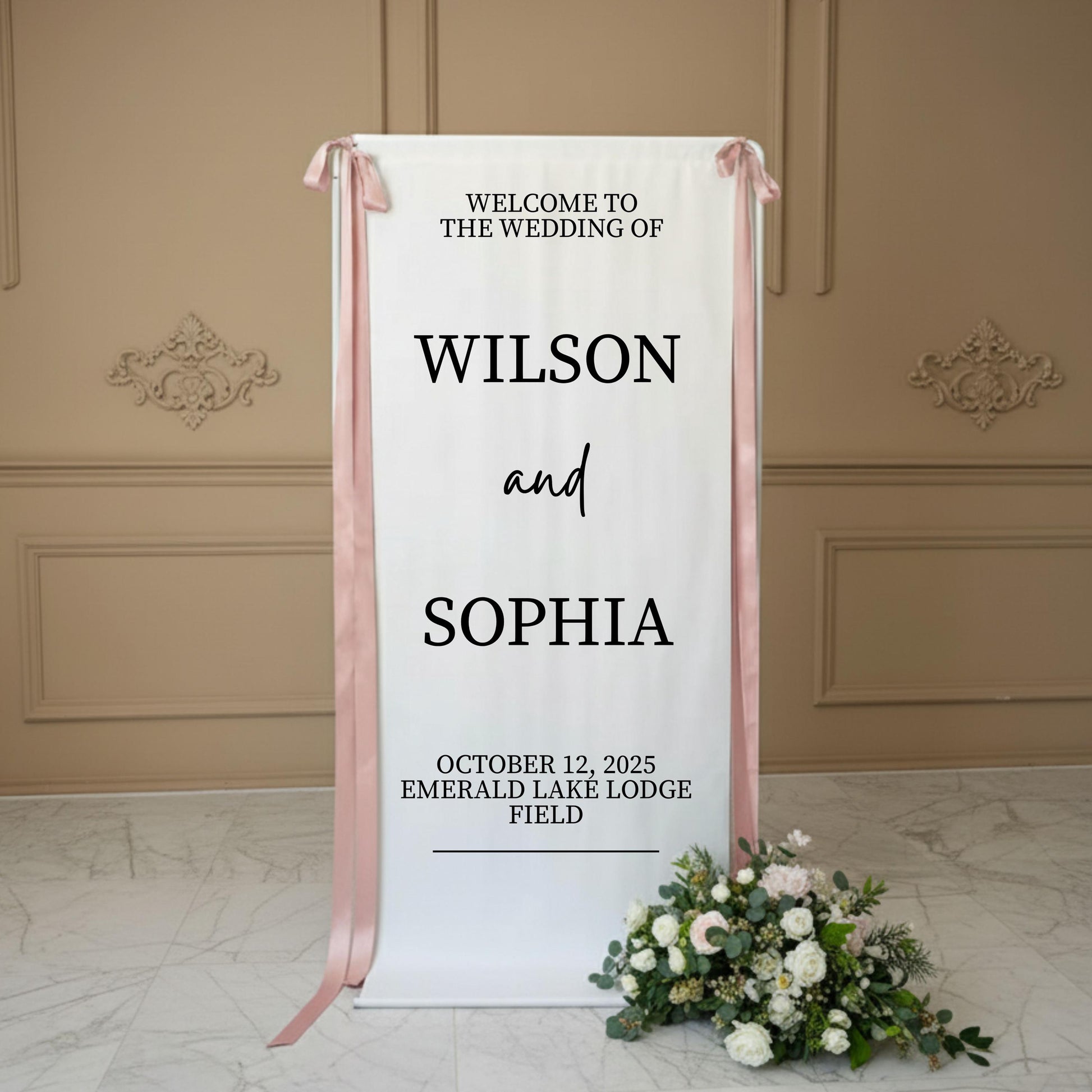 ✨ Custom Wedding Fabric Sign with Gold Stand – Personalized Ceremony & Reception Décor ✨